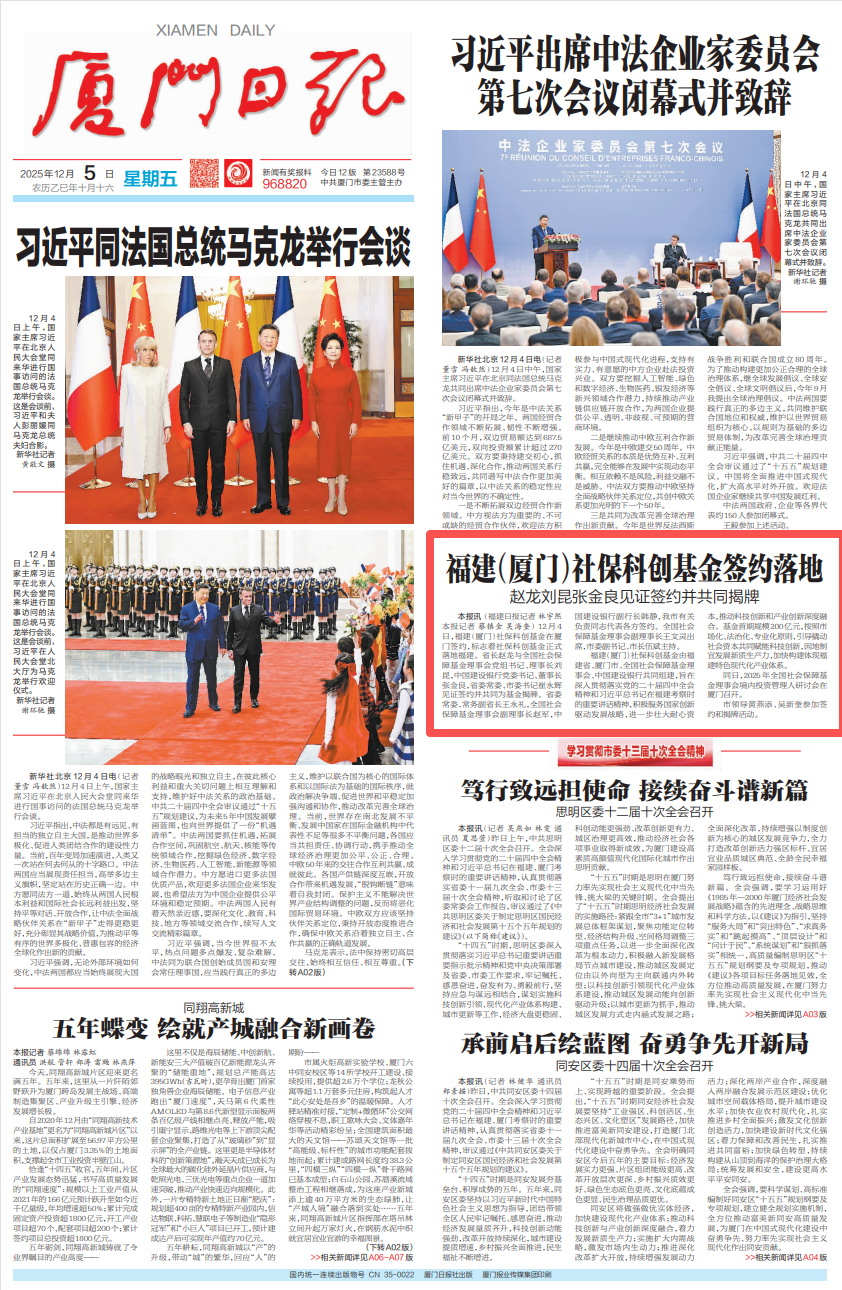 12月4日,福建(廈門(mén))社??苿?chuàng )基金在廈門(mén)簽約,建發(fā)參與出資與管理?!陡=ㄈ請蟆贰稄B門(mén)日報》進(jìn)行了相關(guān)報道,特摘錄分享。