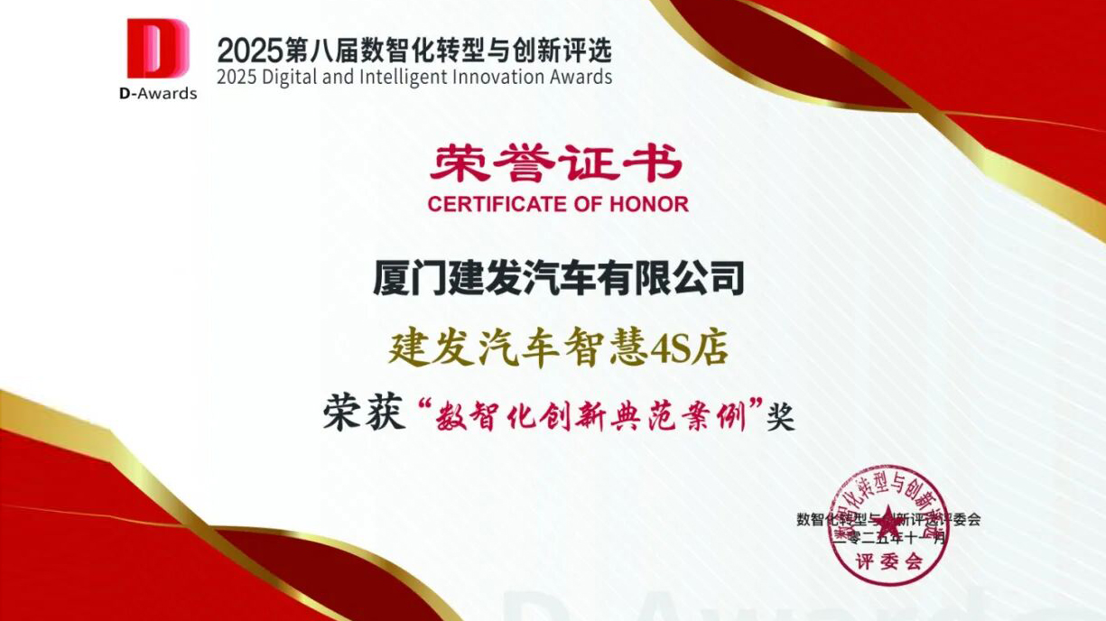 建發(fā)汽車“智慧4S店”項(xiàng)目獲全國“數(shù)智化創(chuàng)新典范案例”獎
